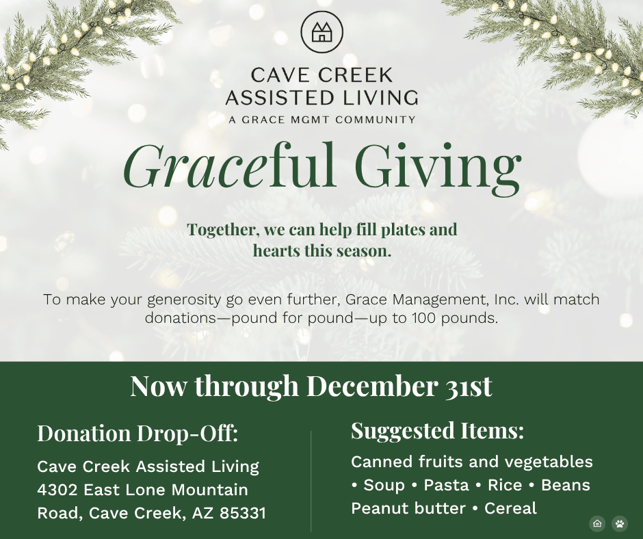 To make your generosity go even further, Grace Management, Inc. will match donations—pound for pound—up to 100 lbs! We can help fill plates and hearts this season through Graceful Giving.